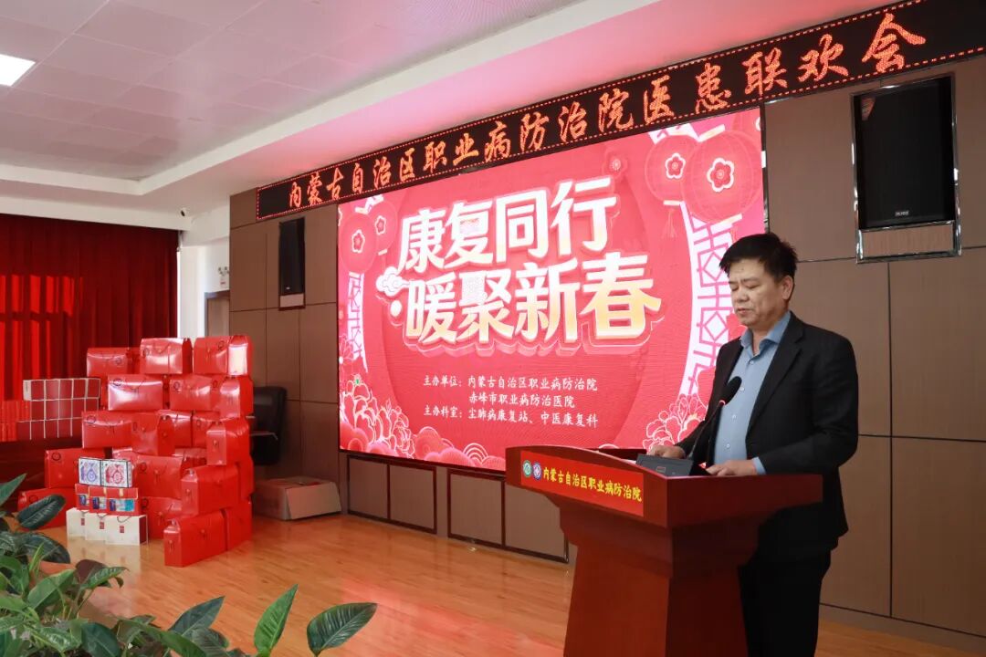 为进一步提升医疗服务质量,搭建医患沟通的暖心桥梁,2026年1月16日,内蒙古自治区职业病防治院(赤峰市职业病防治医院)尘肺病康复站联合中医康复科(职业病二科)与职业病科成功举办“迎新春、促和谐——医疗服务提升医患茶话会”。医患双方齐聚一堂,在温馨氛围中敞开心扉,共话职业病健康管理与医疗服务提升,让温暖与信任在新春前夕悄然绽放。